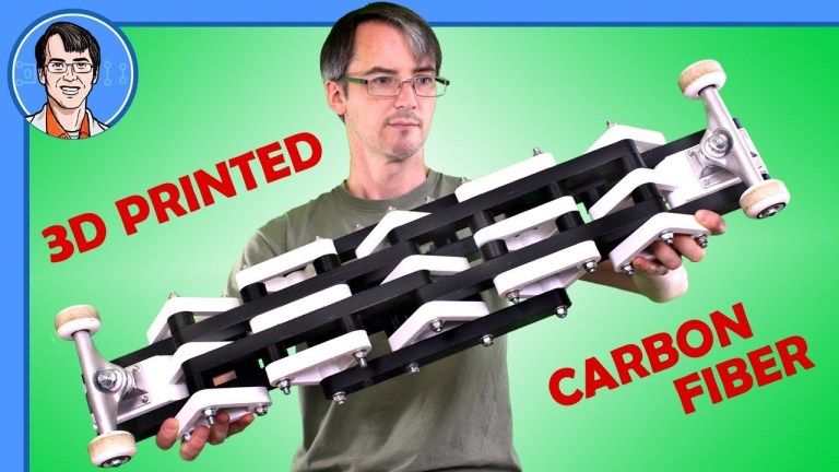 James Bruton, a former toy designer, YouTuber and general robotics, electrical and mechanical engineer has shared a video on how he made this skateboard using carbon-fibre-reinforced PLA filament and 3D-printed it alongside regular PLA to see how it measured up.