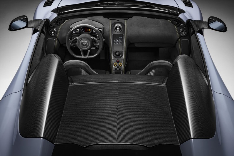 Also making its public debut at the Geneva Motor Show, the 675LT Spider is limited to only 500 examples worldwide, with each model already accounted for. The team at MSO has developed a one-off example of the track-honed Spider finished in Ceramic Grey from the MSO Defined range with even greater levels of carbon fibre than the standard model. The satin carbon fibre retractable hardtop and tonneau can be operated at speeds up to 40km/h (25mph) and saves 1kg, while the front wings include carbon fibre louvres.