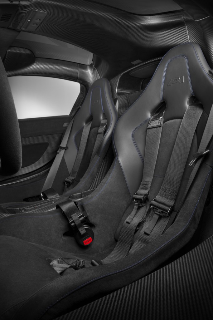The McLaren P1 by MSO, one of the 375 road legal versions produced, is presented with a full visual carbon fibre body which has been hand-laid, with a bespoke ‘Lio Blue’ tinted lacquer. The Geneva Motor Show marks the first time the full visual carbon fibre body conversion has been displayed publicly after it was made available to McLaren P1 customers earlier in the year. Other key upgrades completed by MSO include a gloss black finish to the wheels, an extensive retrim of the interior with carbon black alcantara and contrasting blue stitching, and a 24-carat gold exhaust heatshield.