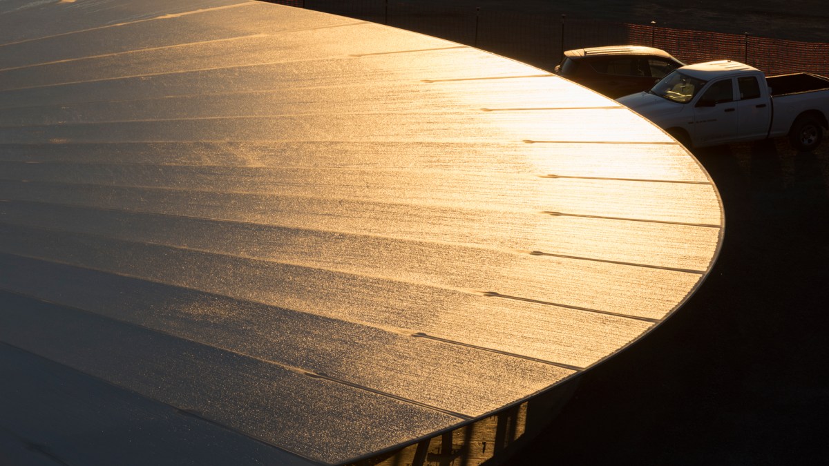 The 80 ton roof which Apple believes is the largest freestanding carbon fibre roof ever made, was created by Dubai-based Premier Composite Technologies. It was assembled and tested in a Dubai desert before being shipped in pieces to Cupertino, California. The circular roof is made up of 44 identical radial panels averaging 70 feet long and 11 feet wide, and each connects to a small central hub positioned in the middle.