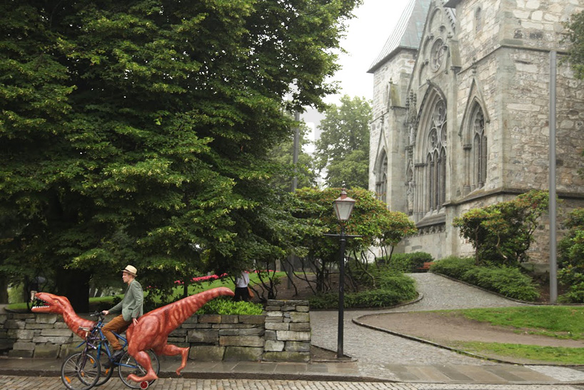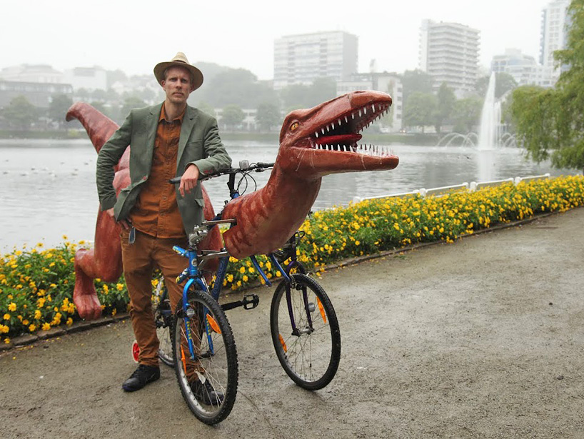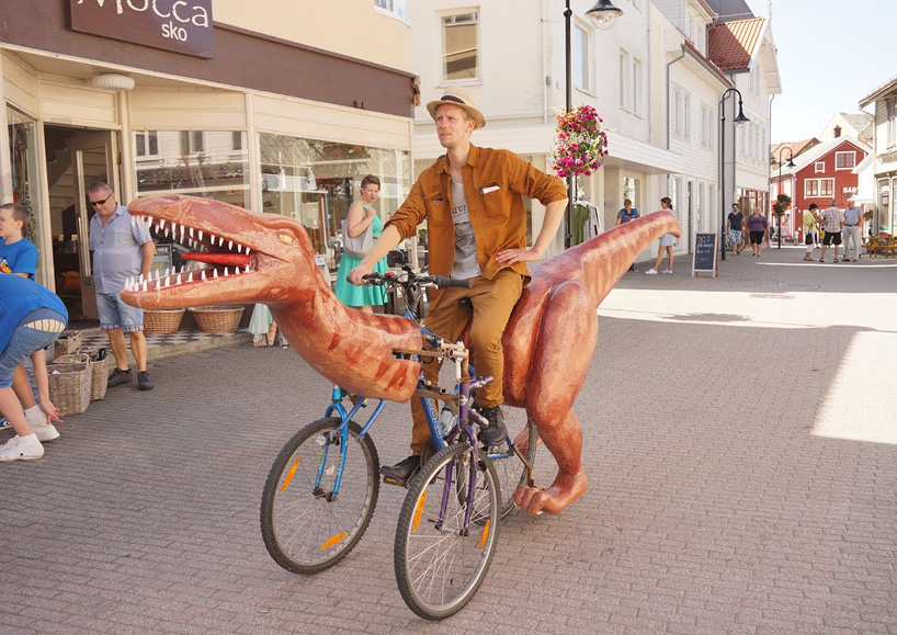 Once completed the Cretaceous critter was then fitted to the vehicle’s frame which was welded together from three different bicycle sections. Moestue told designboom The trike was created for a trip across the bible belt in Norway to protest against the dogmatic religious education of children.