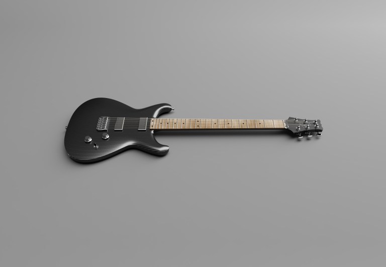 The body and neck of the guitar are integrated into a single monocoque, made from high-performance carbon fibre, and the impressive strength and rigidity of the material mean the guitar needs no truss rod, traditionally used to stabilise the forward curvature of the neck. The carbon fibre construction used means there will be virtual no bend in the neck, no warping and the conductive property of the material helps protect the electronics.