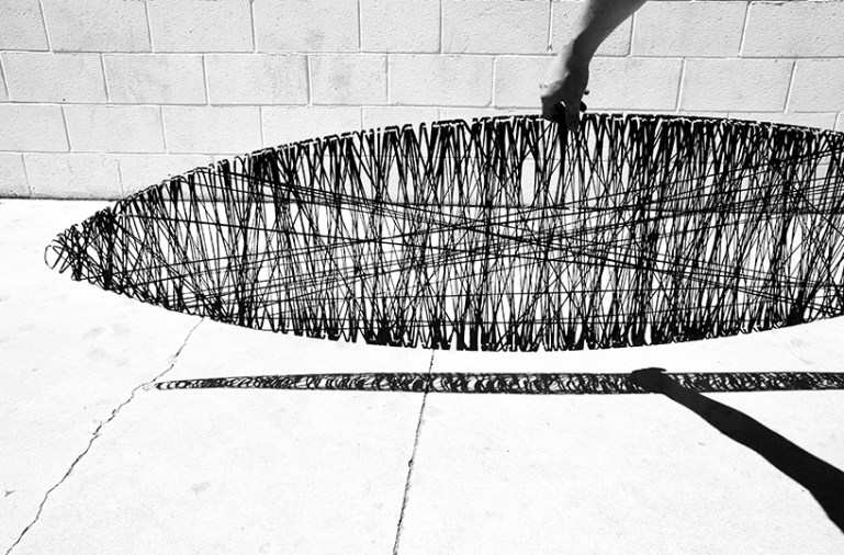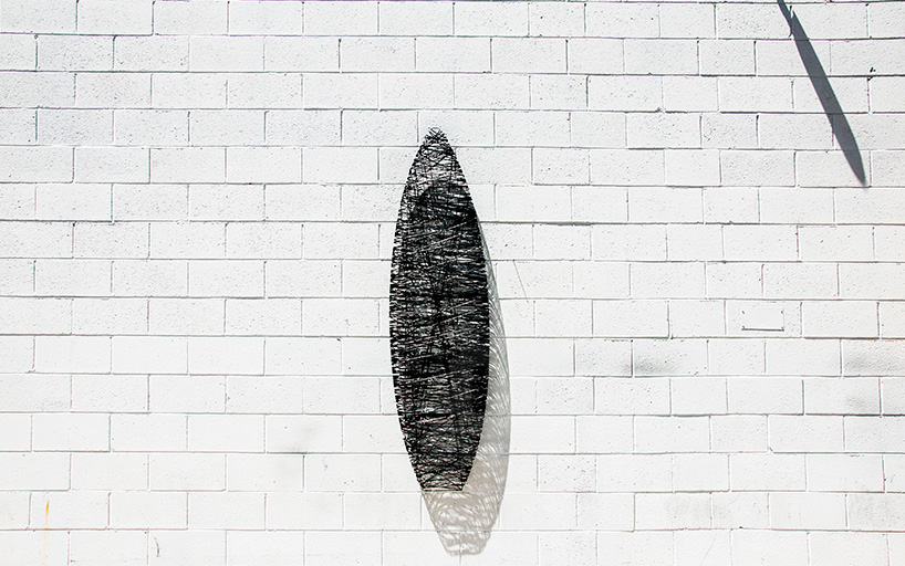 The finished board when hung on the wall will constantly change appearance in relation to the day’s natural light shifting from a flat, two-dimension drawing to a thick mass that casts shadows onto any nearby surface.