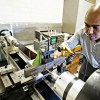 The core of the springs consists of long glass fibres twisted together and impregnated with an epoxy resin system. A machine wraps additional fibres around this core — which is only a few millimetres in diameter — at alternating angles of plus and minus 45 degrees to the longitudinal axis. These tension and compression plies mutually support one another to optimally absorb the stresses acting on the component. In the last production step, the blank is cured in an oven at temperatures of over 100 degrees Celsius.