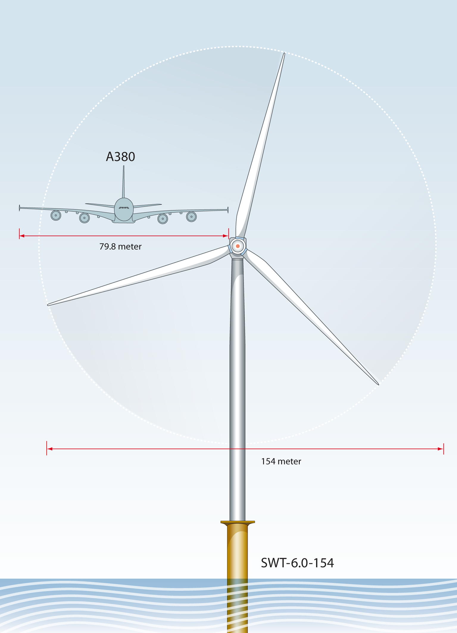 Heavy blades are subject to higher loads and require stronger nacelles, towers, and foundations, the huge rotor, which measures in at 154 metres needs to withstand huge air masses as it’s hit by the energy of 200 tonnes of air per second when the wind blows at a speed of 10 metres per second.
