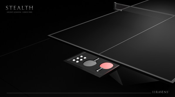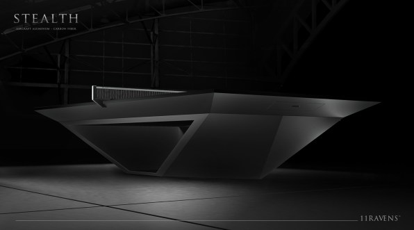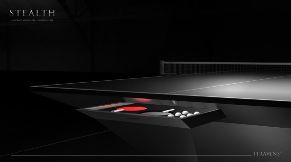 This wonderful piece of work is the Stealth ping-pong table made by US manufacturers 11 Ravens.