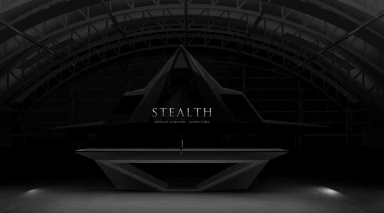 Taking inspiration from the Nighthawk Stealth bomber this is the 13th table designed by Eleven Ravens and has been made using high-grade brushed jet aircraft aluminium accented with carbon fibre. Only 5 of these stealth tables are to be produced each valued at $70,000.