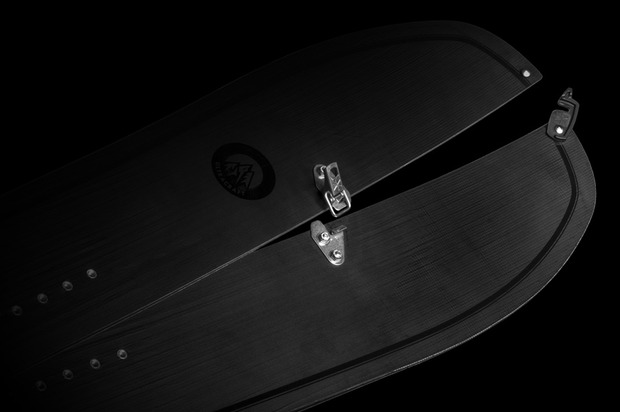 The new Ultracraft is powered and constructed around a ultra-light wood core technology and carbon fibre composites, which reduces the overall weight by 25% compared to other models. Unlike traditional splits designed around a solid board platform, then sliced down the middle, the Ultracraft is one of the first splitboards designed as individual split skis before being transformed into a solid board.