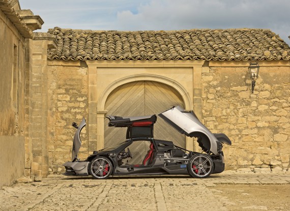 CarScoops is reporting that “Pagani has developed an entirely new composite material for the Huayra BC which it says is 50 per cent lighter and 20 per cent stronger than carbon fibre,” but no information has been provided by Pagani on this new composite material as of yet with their own press release states that the car still uses its carbotanium monocoque with tubular steel front and rear subframes.