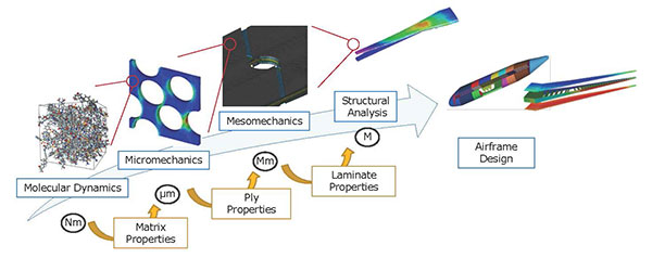 Specifically, by implementing simulation codes on a supercomputer that can analyse mechanical responses from a molecular level to the aircraft’s wing and fuselage, the processes of material selection and design can be performed at high speed and at multiple scales.