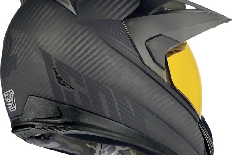 Looking like something the Master Chief would wear into battle, this is the Variant Ghost Carbon motorbike helmet by Icon...